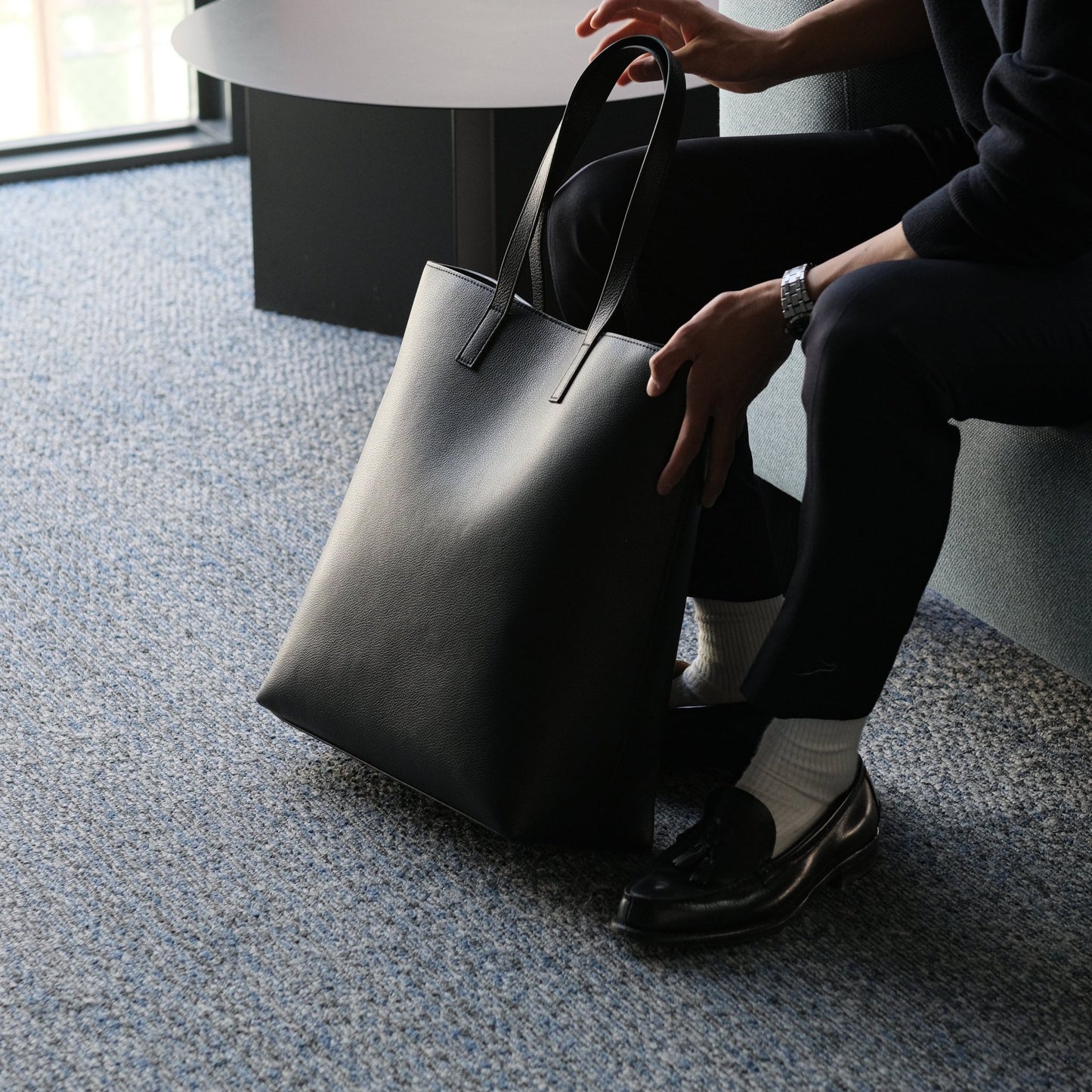Designed to prevent the bag from touching the ground when carried by hand, while also offering a length that allows men to comfortably wear it over the shoulder. The thickness and width are thoughtfully adjusted for a natural grip, ensuring easy and comfortable carrying.